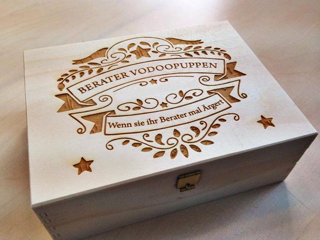 Jeder Empfänger freut sich über eine professionalisierte Geschenkidee. Beschenken Sie Stammkunden mit Holz-Schlüsselanhängern und smarten Gravuren auf Holz. Holzgravuren auf Holz-Geschenkverpackungen sind ein echter Augenschmaus. Testen Sie Gravuren zu Firmengeburtstagen, eine Holzbeschriftung für ein Gründungstreffen und Gravuren auf Holz für attraktive Messegeschenke.